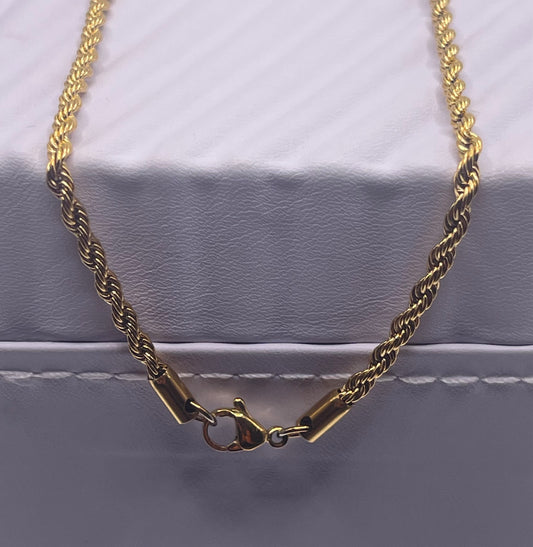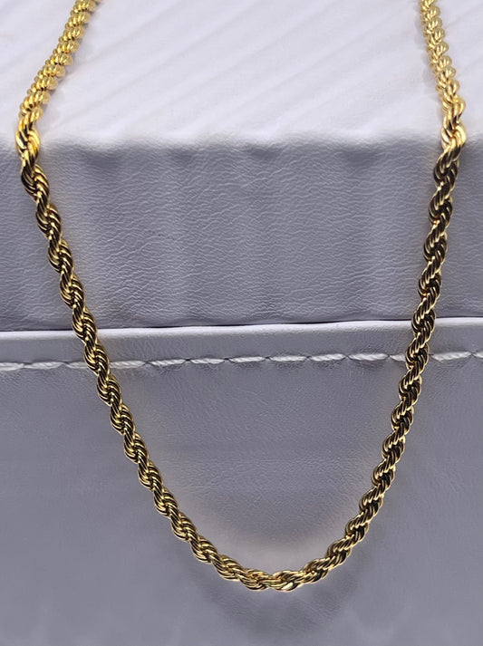 Men Jewelry - Rope Link Chain - Gold Stainless Steel - 3 MM- 55 CM