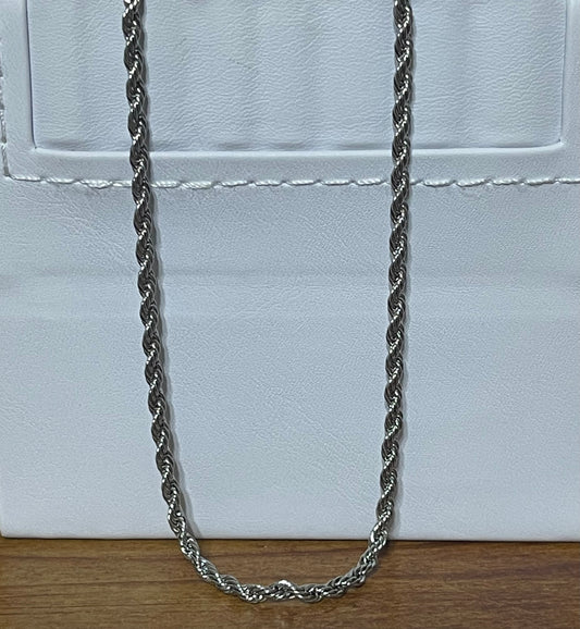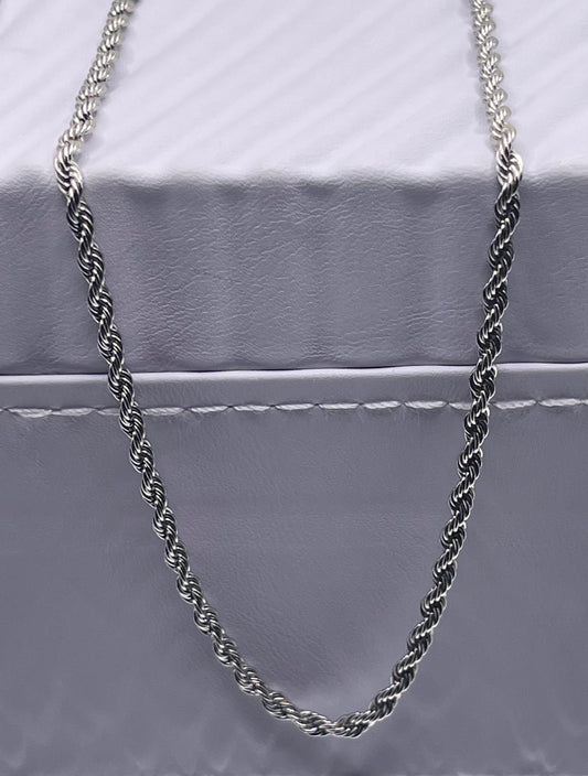 Men Jewelry - Rope Link Chain - Silver Stainless Steel - 3 MM- 55 CM