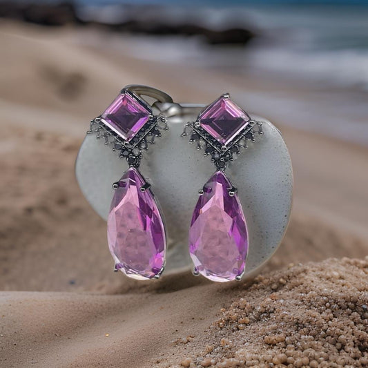 Fancy Cubic Zirconia Crystal Big Drop Dangle Earrings In Red