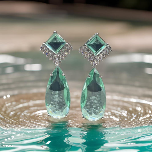 Fancy Cubic Zirconia Crystal Big Drop Dangle Earrings In Green