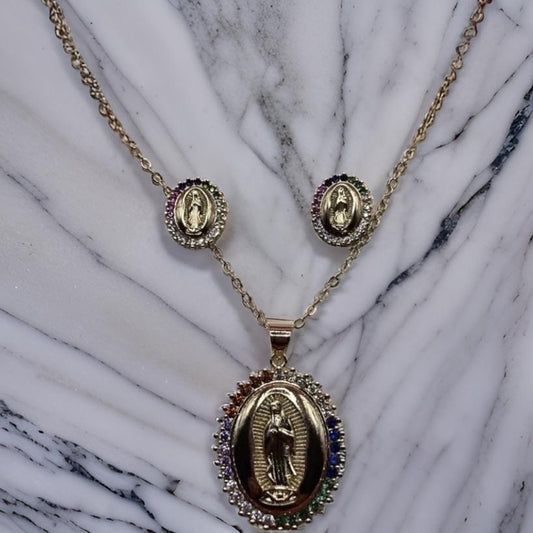 Beautiful Virgin Mary Pendant Necklace With Earring Studs