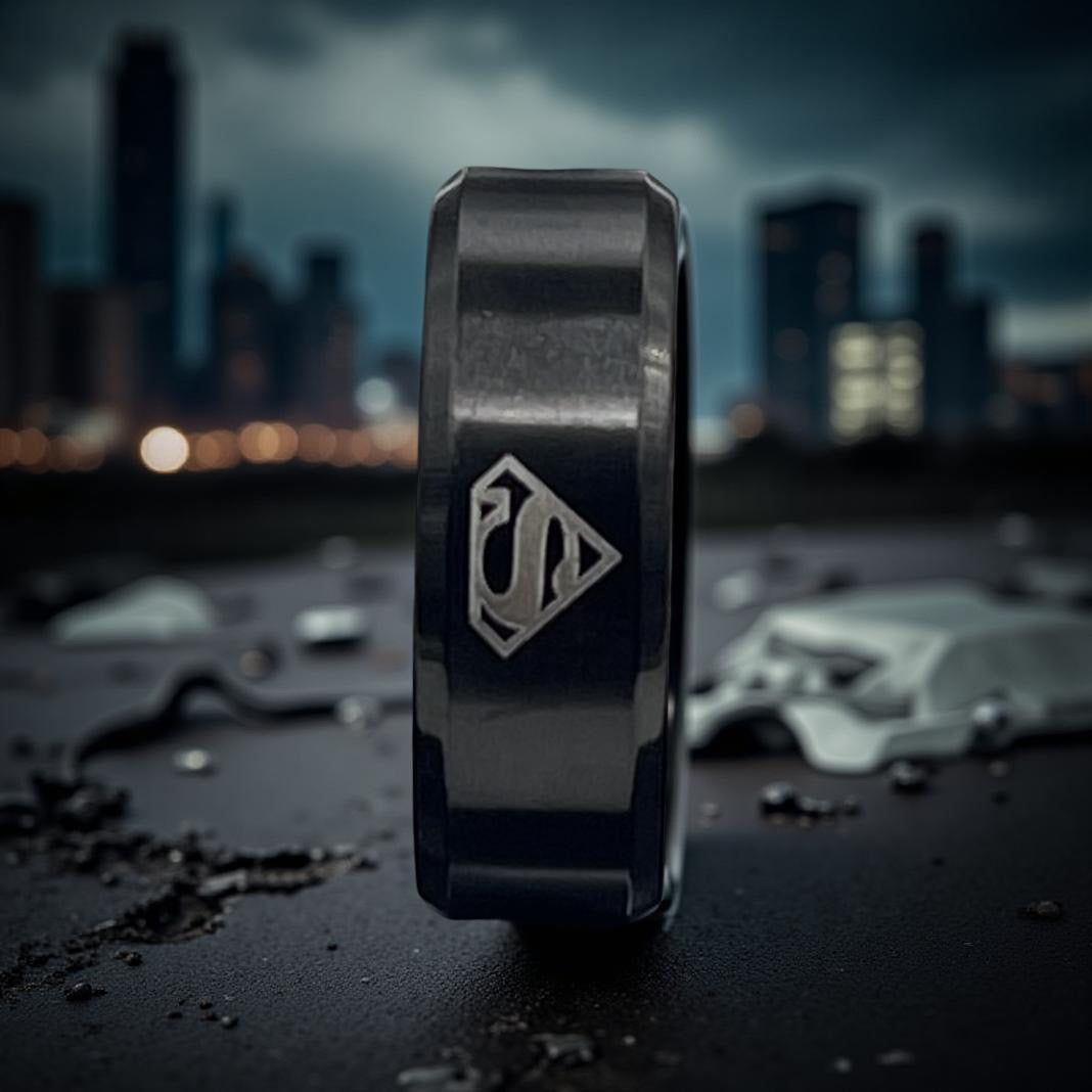 Fashion Stainless Steel Superman Emblem Ring In Black