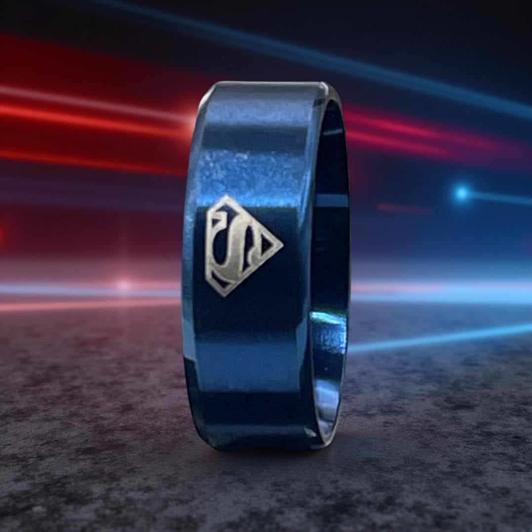 Fashion Stainless Steel Superman Emblem Ring In Blue