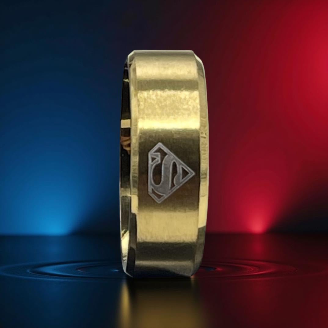Fashion Stainless Steel Superman Emblem Ring In Gold